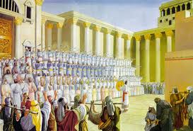 “At the time of the feast of trumpets, when many were gathered at the holy city, the people assembled in the street that was before the water gate; "and they spake unto Ezra the scribe to bring the book of the law of Moses, which the Lord had commanded to Israel. And Ezra the priest brought the law before the congregation both of men and women, and all that could hear with understanding, upon the first day of the seventh month. And he read therein before the street that was before the water gate from the morning until midday. . . . And the ears of all the people were attentive unto the book of the law."